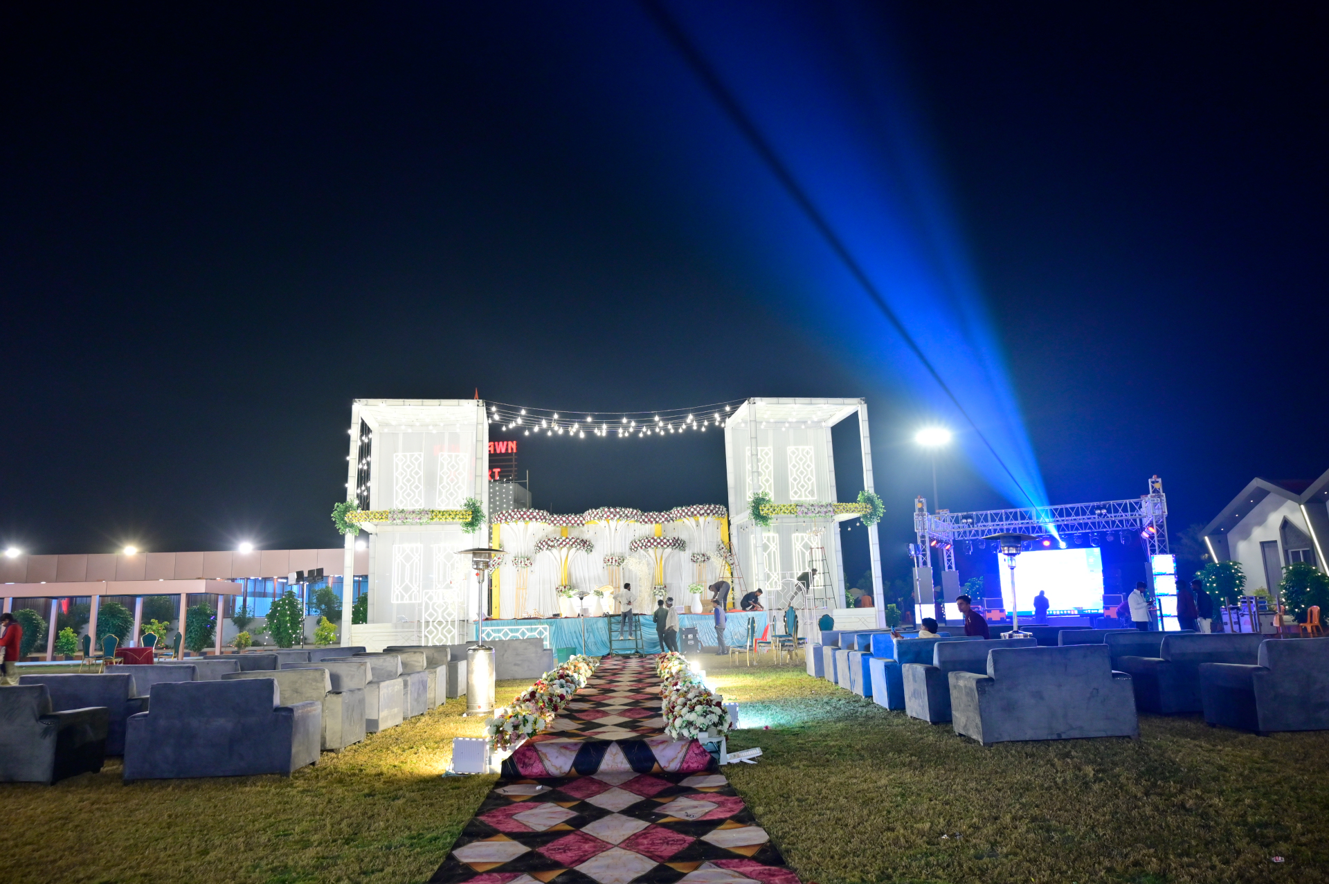 Large Lawn Facility with large area for seating with best decoration.